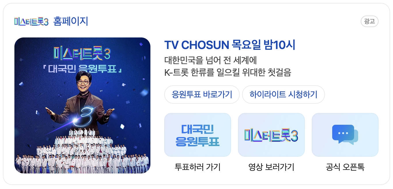 - SNS에 해시태그 응원글 작성 (#미스터트롯3 #미스터트롯3투표하기 등)